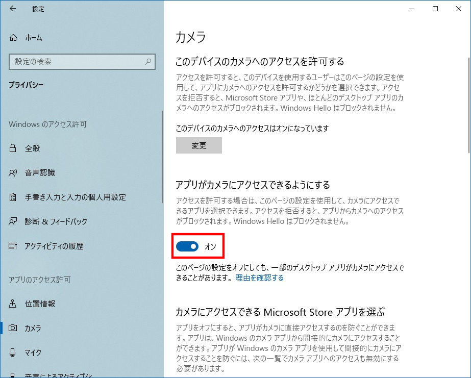 と、さらにググるとキャプチャーボードがPCに認識されない場合の対処法(Windows 10のカメラのプライバシー設定を見直す)を発見。